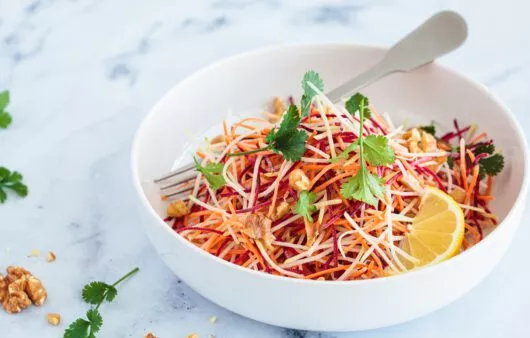 מתכון לסלט שורשים קליל ופשוט להכנה בשילוב וויניגרט לימון ושמן זית